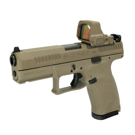 CZ P-10 C OR FDE je naprostá novinka v segmentu „striker fired“ pistolí pro osobní ochranu a ozbrojené složky v kompaktní velikosti, která je vhodná také pro skryté nošení, tento model se závěrem upraveným pro snadnou montáž kolimátoru. Pro originální řešení CZ je typická robustnost, pevnost a odolnost montáže, nízká stavební výška, snadné nastřelení kolimátoru i na větší vzdálenosti a možnost použití zvýšených mechanických mířidel při selhání optiky. Tato varianta je nyní k dispozici také s rámem a závěrem oblíbené barvy Flat Dark Earth. Povrchová úprava závěru včetně krytky rozhraní pro montáž kolimátoru je provedena extrémně odolným nástřikem cerakote.