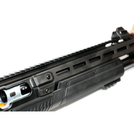 Střelivo Rubber Ball se vkládá do zásobníku pod hlavní, který pojme až 16 ks střeliva. Otvor pro nabíjení se otevře po natažení brokovnice jejím předpažbím. Pohybem předpažbí vzad a vpřed dochází k přebíjení. Odtud ten přídomek pumpovací brokovnice.